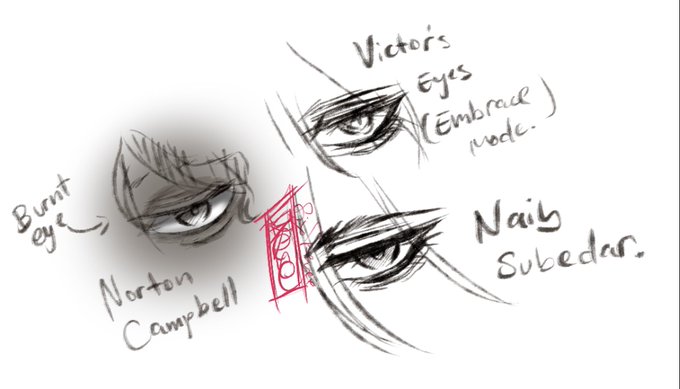 Reuploading my sketches of practice eyes of Victor (embrace), Naib, and Norton. #rkgk #idv #idvfanart #identityv