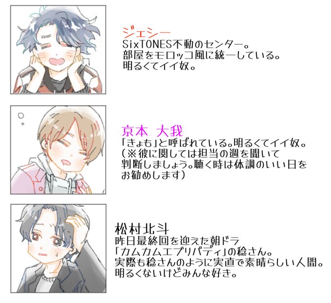 こちくん初インセプションおめ!🎉 ゆごじぇは凄いなって常々思っていたけど今回のラジオで分かったことはやっぱりゆごじぇは凄い(語彙力) お察しの通り描き終わらなかったのでパート①🤗 #SixTONESANN
