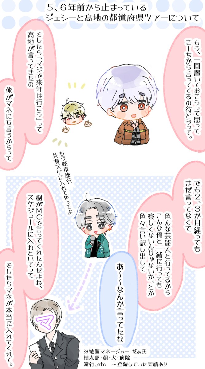 こーちが特別なジェシー可愛いしこーちを超える人なんているのかな探してみたいけどいないんだろうなってジレンマ抱えてるのも可愛いし凹むジェシーを必死に慰めてる樹も可愛いしもう可愛いの渋滞だった(でもハワイ旅行にこーちくんだけ誘わないのはかわいそ過ぎるからやめたげてw) #SixTONESANN