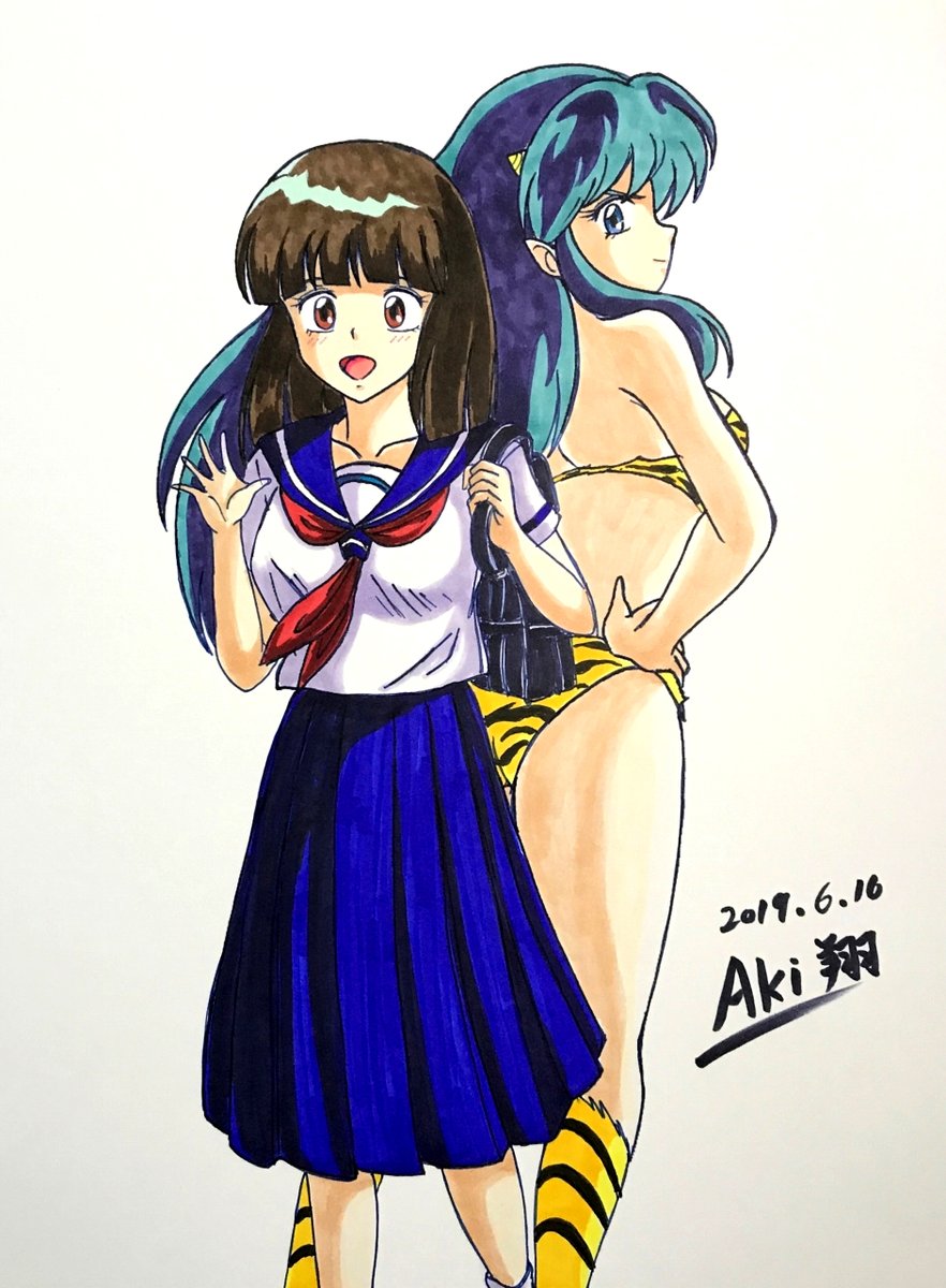 最近描いたラムちゃんとらんまさん。ポーズの練習のつもりで描いたけれど中々うまくいかない…。もっと描いて調子戻したい #copic #コピックイラスト