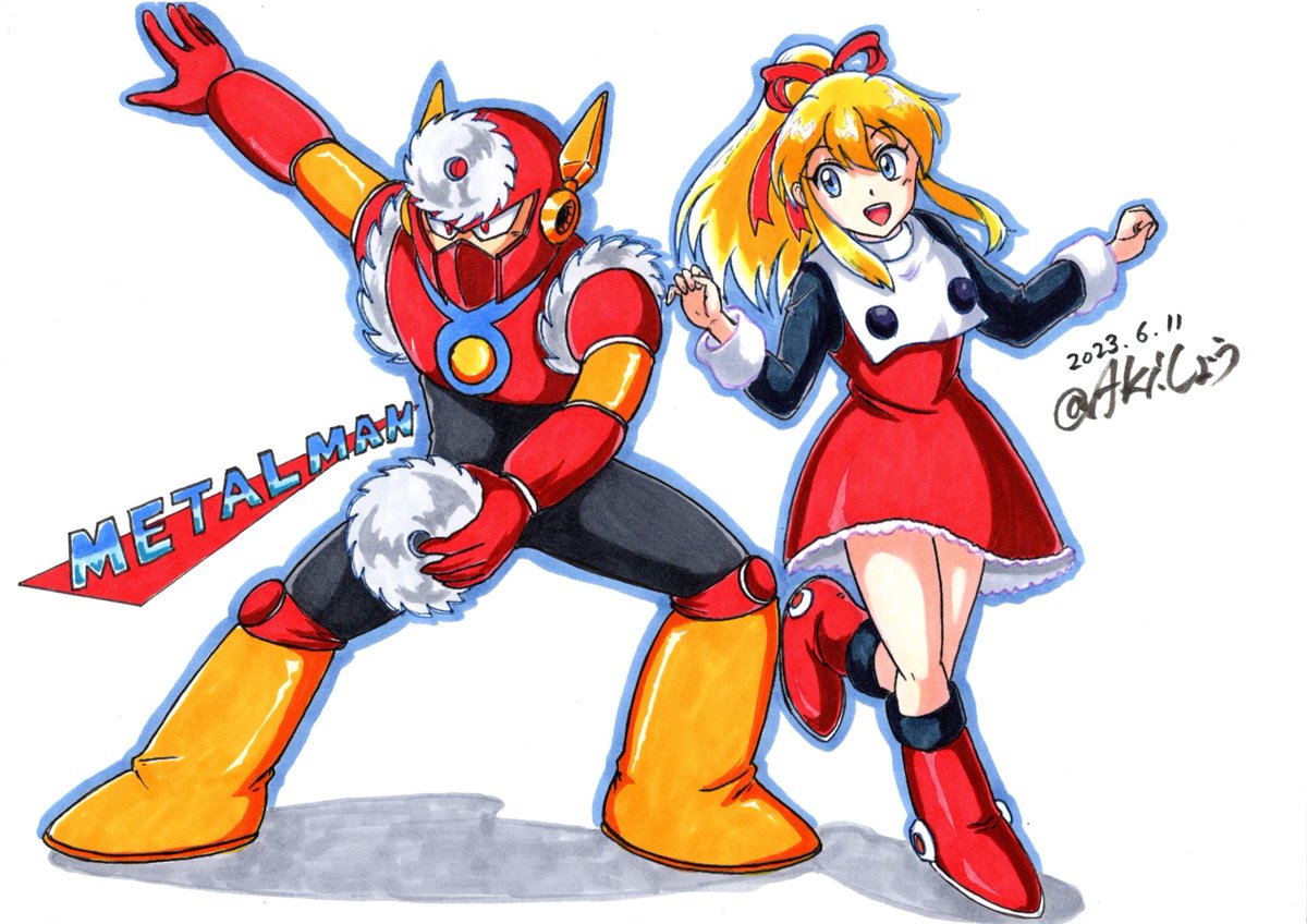 気分転換にメタルマンとロールちゃん #コピックイラスト #ロックマン