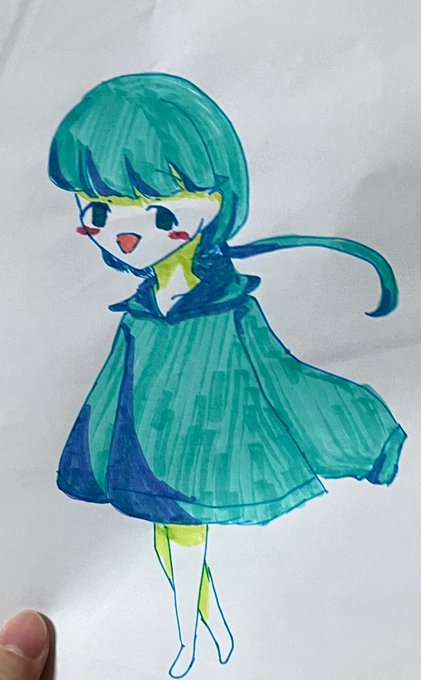 この前描いたやつ 5色縛りです。 写ってる指は主のです。お気になさらず。 #イラスト #イラストアナログ #イラスト好きな人と繋がりたい