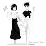 two curious angels talking about demons (one is my OC, I made him a woman for the challenge) #inktober2021 #myartwork #Inktober2021Day11 #Helltaker #Helltakerfanart