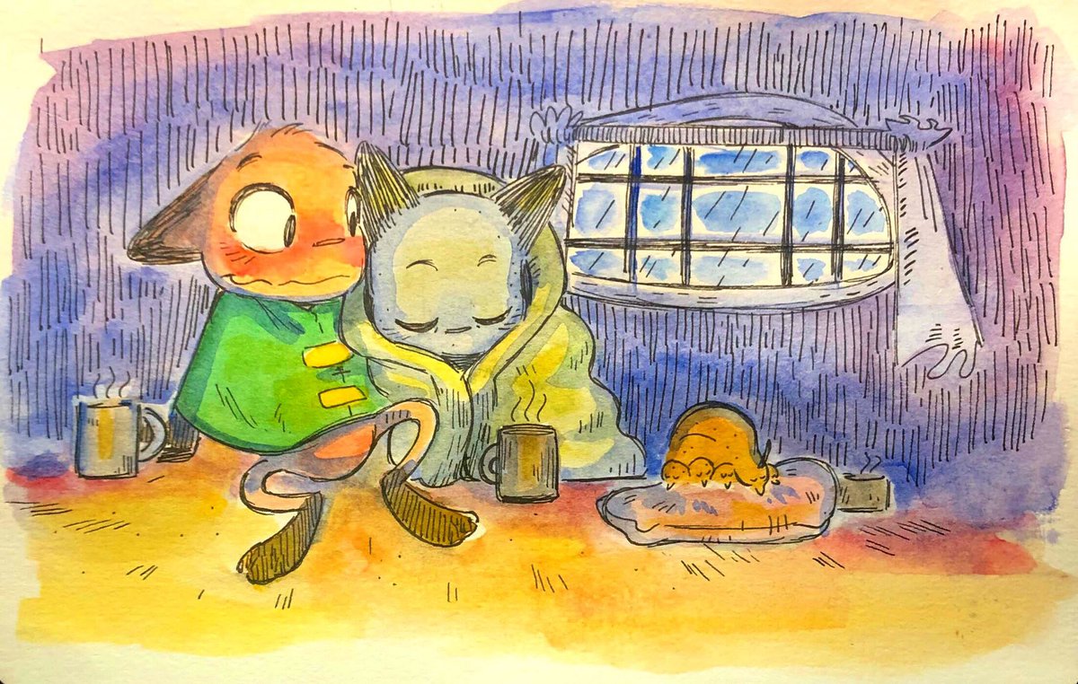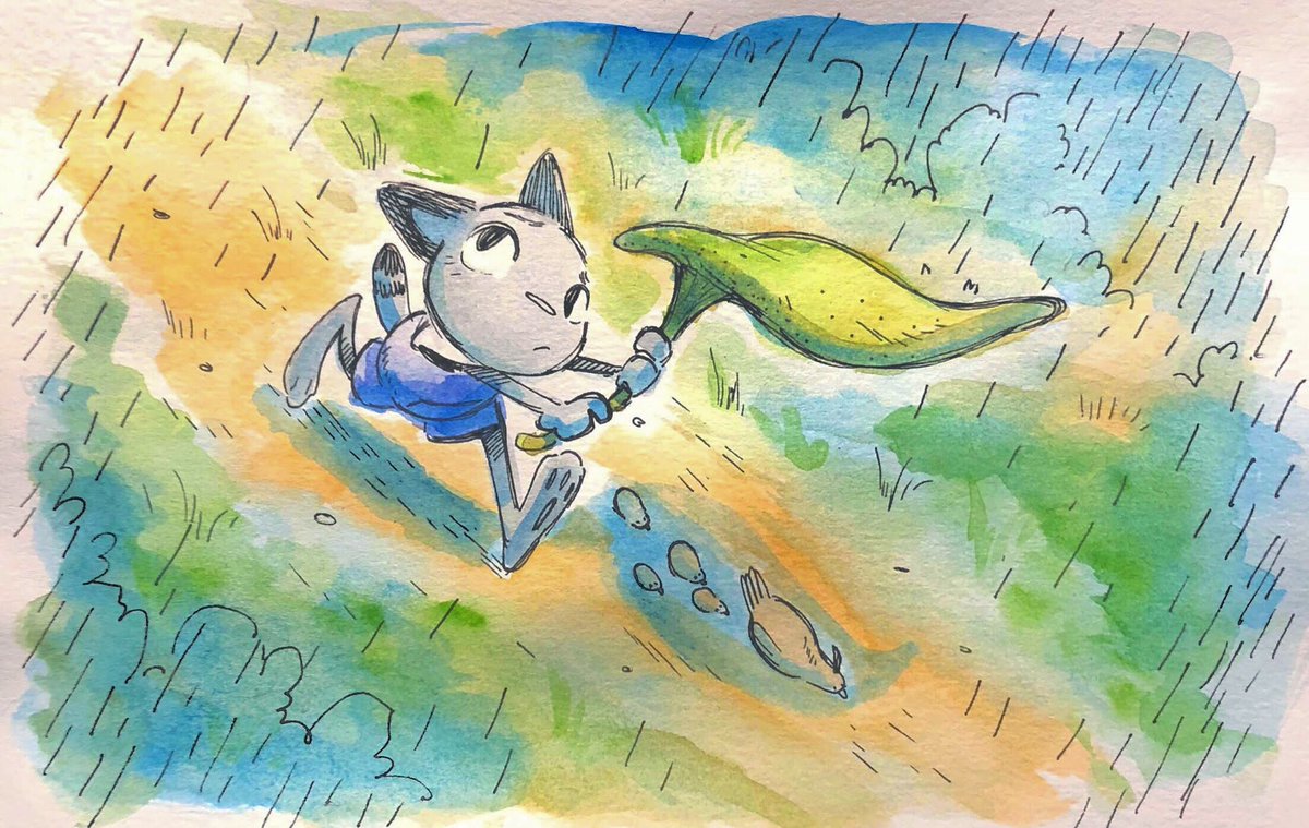 Rainy days (Sorry for the late update. Finally got the time to upload these!) #inktober #inktober2019 #ink #watercolor #comic #cat #quail