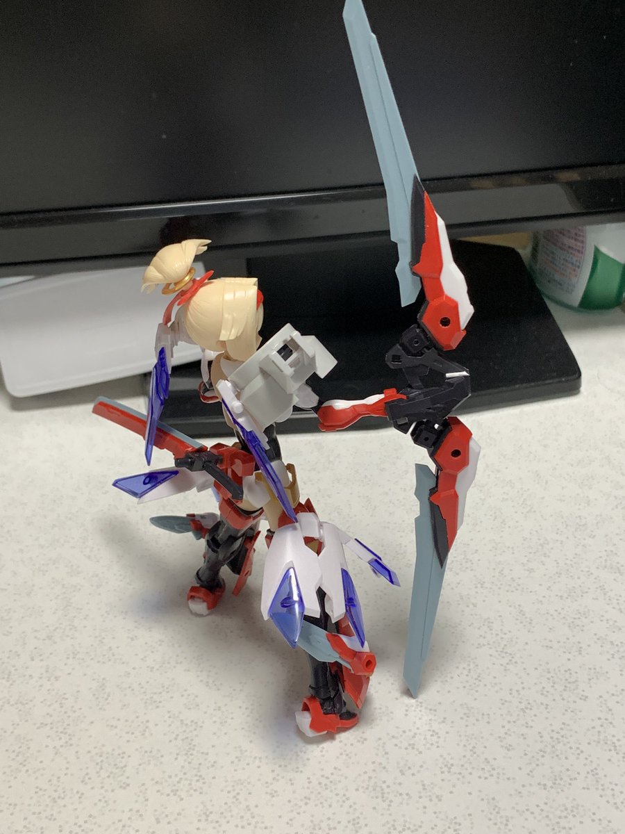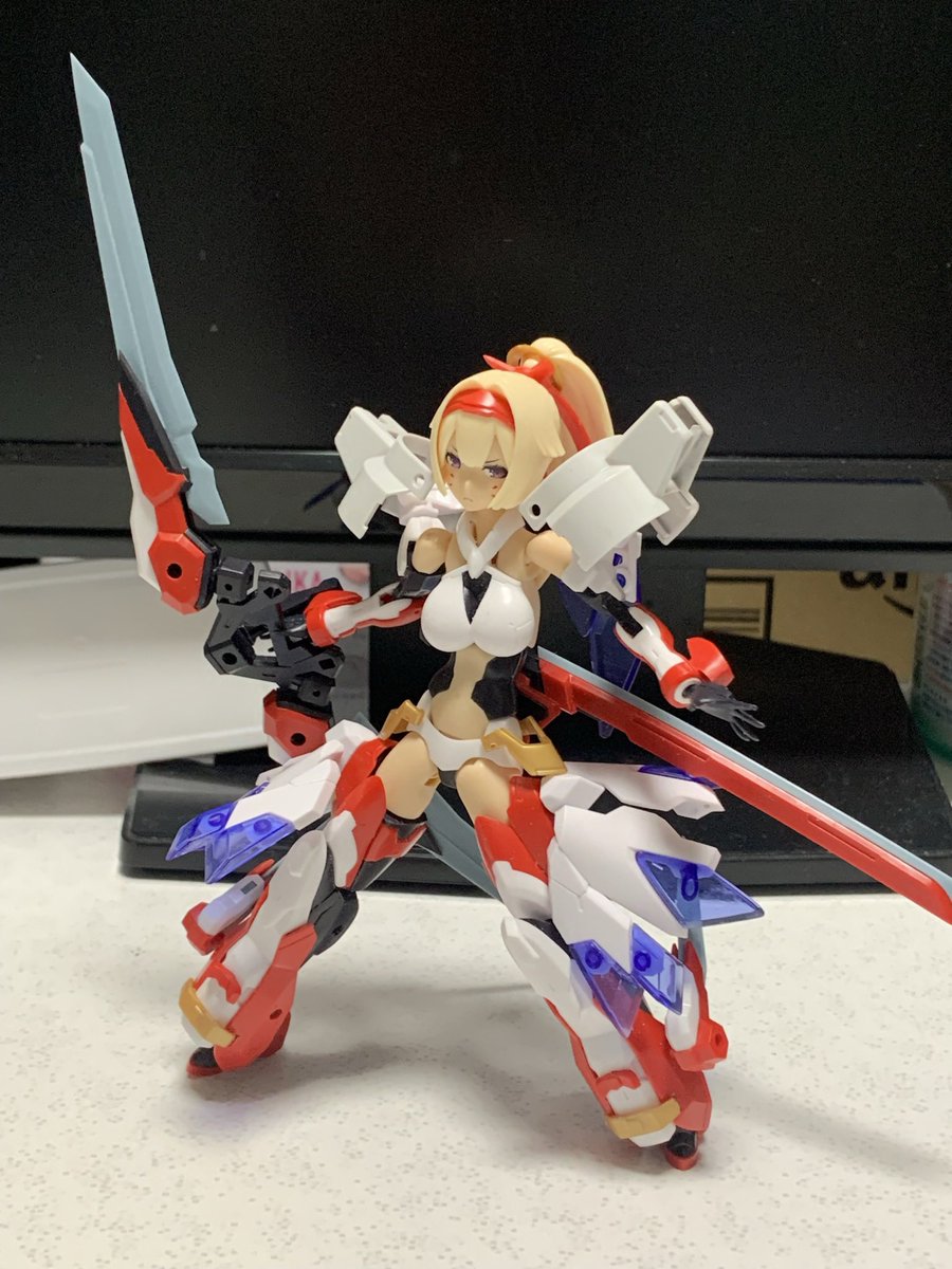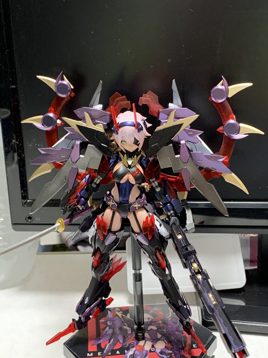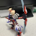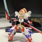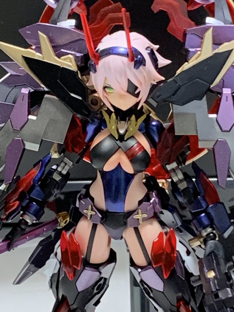 雨の合間になんとか塗装。 赤の発色を重視して下地→アルティメットブラック→ミラークローム→プレミアムレッドパールと重ねました。 髪の色もスマホのカメラだと微妙ですがグラデいれてます。 #メガミデバイス #コトブキヤコレクション #朱羅弓兵