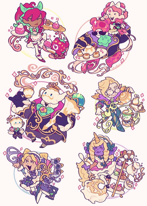 So here's the complete set of my lil #LeagueOfLegendsFanArt cafe cuties Hope y'all enjoy them (also tag yourself as one of the butlers, I'm the croissant cat)