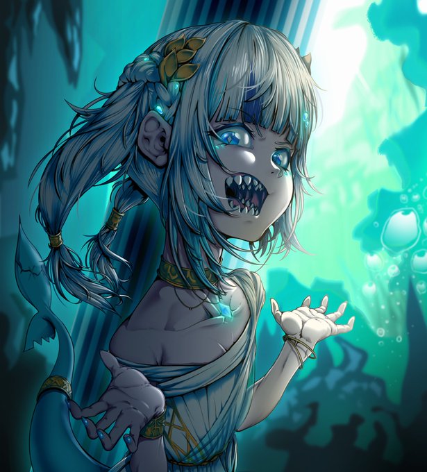Fogotten underwater greek temple monster girl has been spotted! 🫧🦈 #gawrt #holomyth