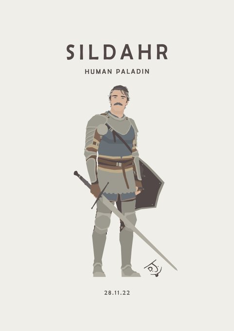 Past his middle-ages now, Sildahr serves as a respected Warden Captain of the Thorns, the peacekeeping forces of the Kingdom of Kell. So, yeah, he's basically just Tom Selleck in plate armour. #dungeonsanddragons #dndcharacter #dndart