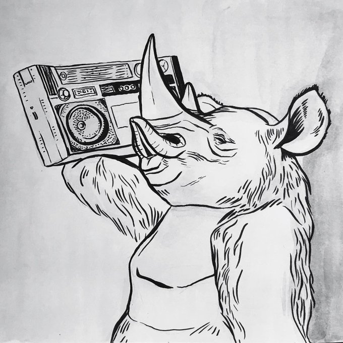 #Inktober2020 Days 3-4: Bulky/Radio! So I drew a gorrhino (gorilla rhino) jammin’ with his boom box radio 😎🎶🦏🦍 @Inktober Rhinos are so silly when they open their mouth like that 😭☺️#animalart