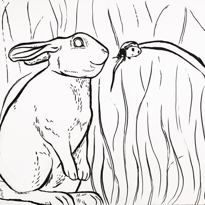 #inktober2020 Day 5: Blade! Everyone is drawing swords and knives but what about a dainty blade of grass? 🐰🌱🐞☺️ I decided to do one without a pair so the rest could be since October has an odd number of days 😅 #blade #bunny #animalart @inktober