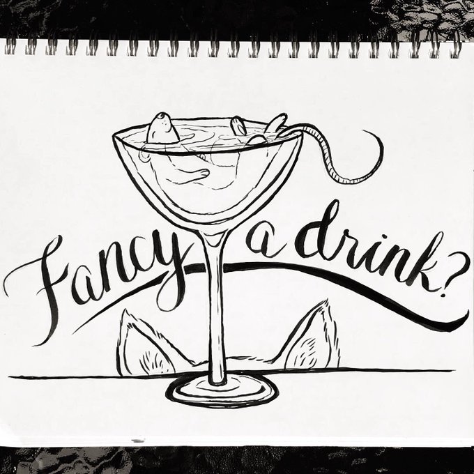 #inktober2020 Days 6-7: Rodent/Fancy! This feline definitely fancies a drink... I’m obsessed with my brush tip ink pen but I’ve never done any calligraphy! I hardly add text so this was a fun way to practice! #animalart #calligraphy @inktober