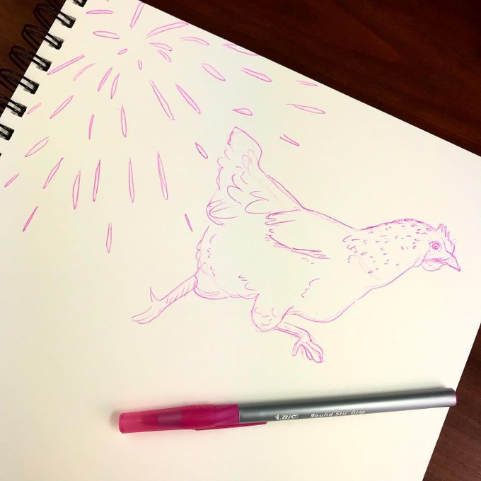 Days 27/28: Spark/Crispy. An average firework spark but this chickens not taking any chances 🐓💥🍗👀 @inktober #inktober2021 #inktober2021day28 #inktoberday27