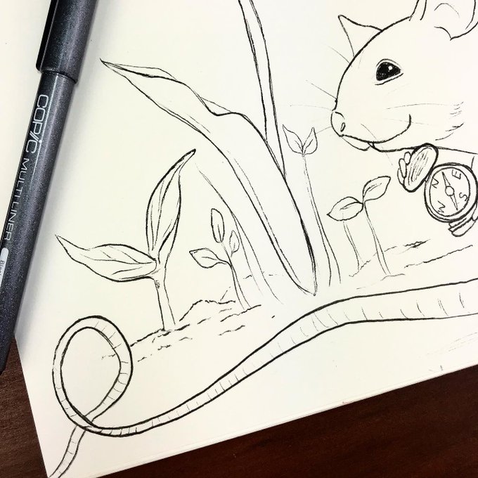 Day 19: Loop. I drew a loop in the mouse tail 🐁🤷🏻♀️ Took the easy way out but hey I’m adding on to the same drawing this week so work with me 🥲 @inktober Check out the full drawing coming together on Instagram! #inktoberday19 #inktober2021 #Mouse
