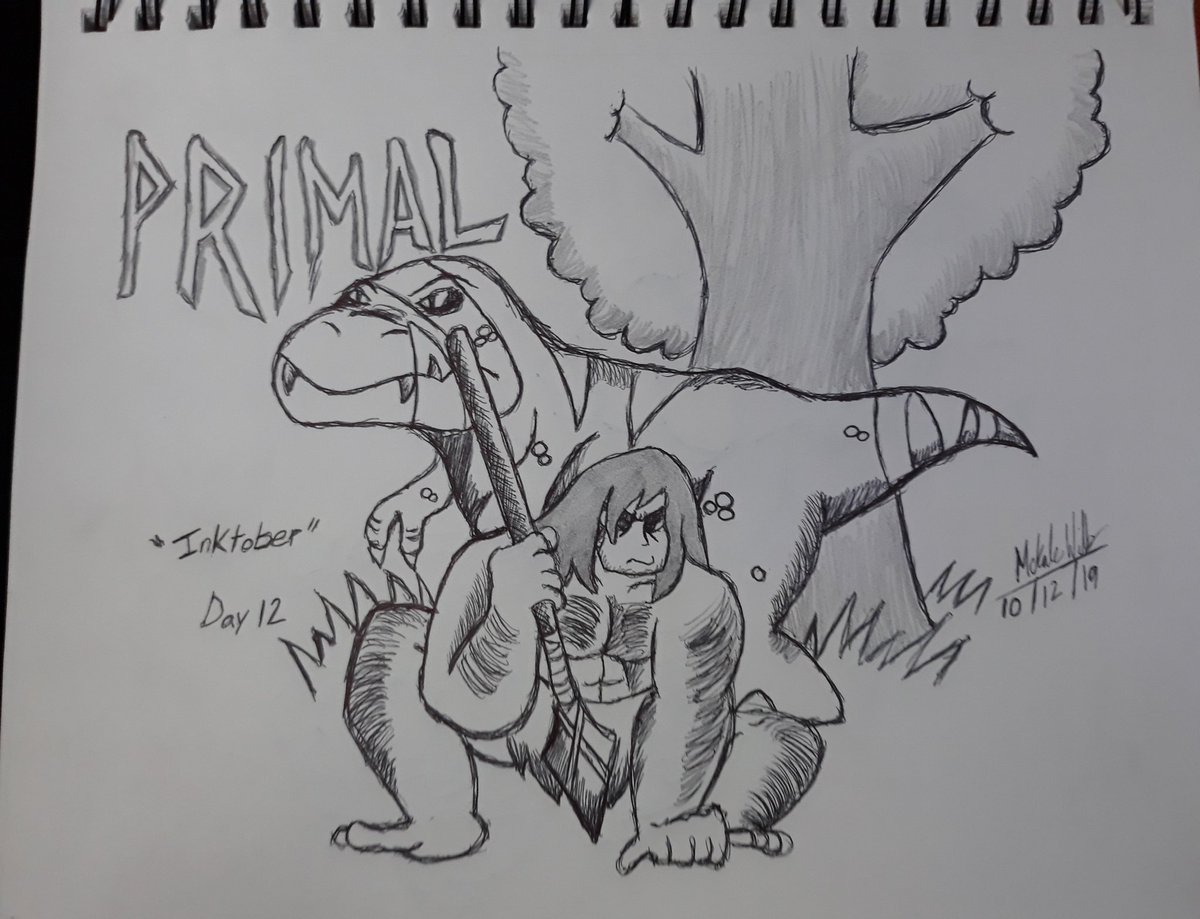 Did this while I'm on the bus to Maryland. Primal is a great show by Genndy Tartakovsky. #genndytartakovsky #genndytartakovskysprimal #genndytartakovskyprimal #primal #dinosaur #trex #caveman #spear #fang #spearandfang #inktoberart #inktober2019 #inktoberday12 #adultswim