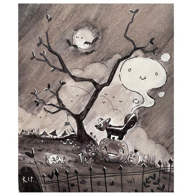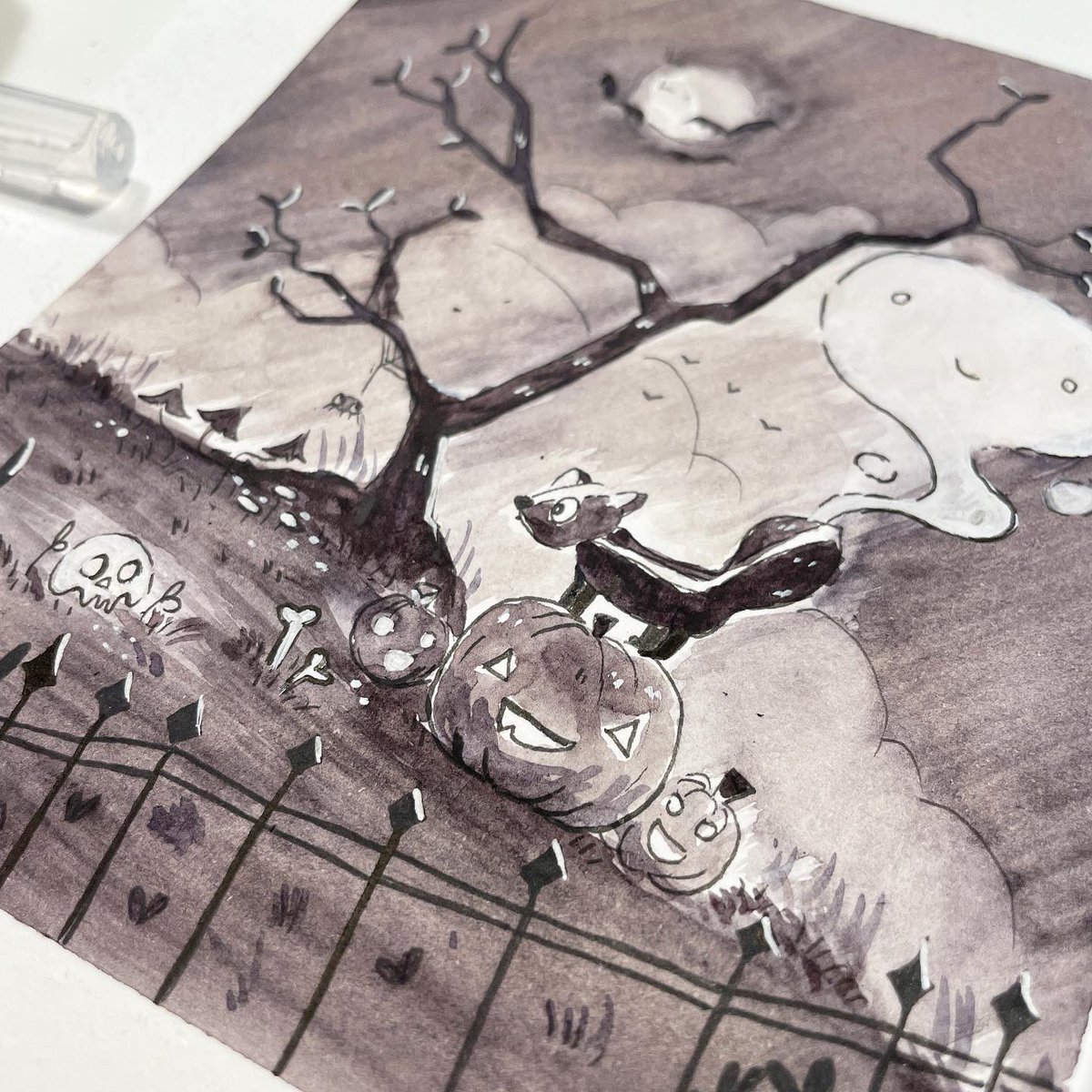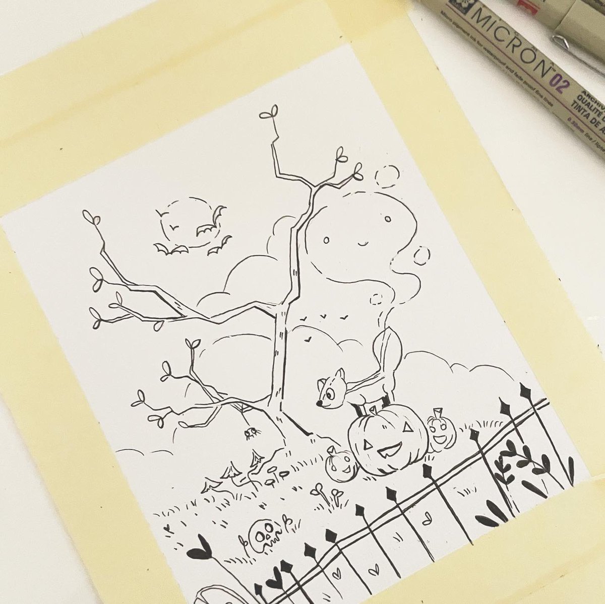 Smelly Skunk 🦨 This prompt is from a lovely @tiffanytanart who prepared a really fun list of ideas to draw. Gonna try some more in the future, if time allows 😊 Swipe for some process shots and video. #cheektober21 #inktober2021 #inktoberpromptlist #smellyskunk