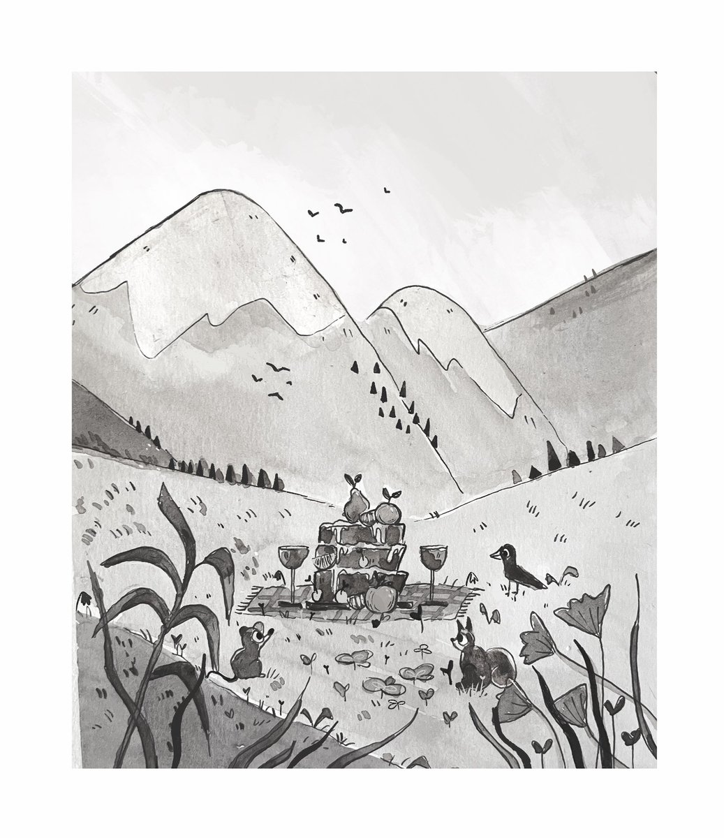 Cake 🍰 One more for Inktober. These have been so relaxing to do and hoping to do more of them, even when October ends. #inktober2021 #ink #cheektober21 #cake #homemadecake #cakeinforest #woodland #woodlandcreatures #traditionalart #inkart #micronpen #blackandwhite