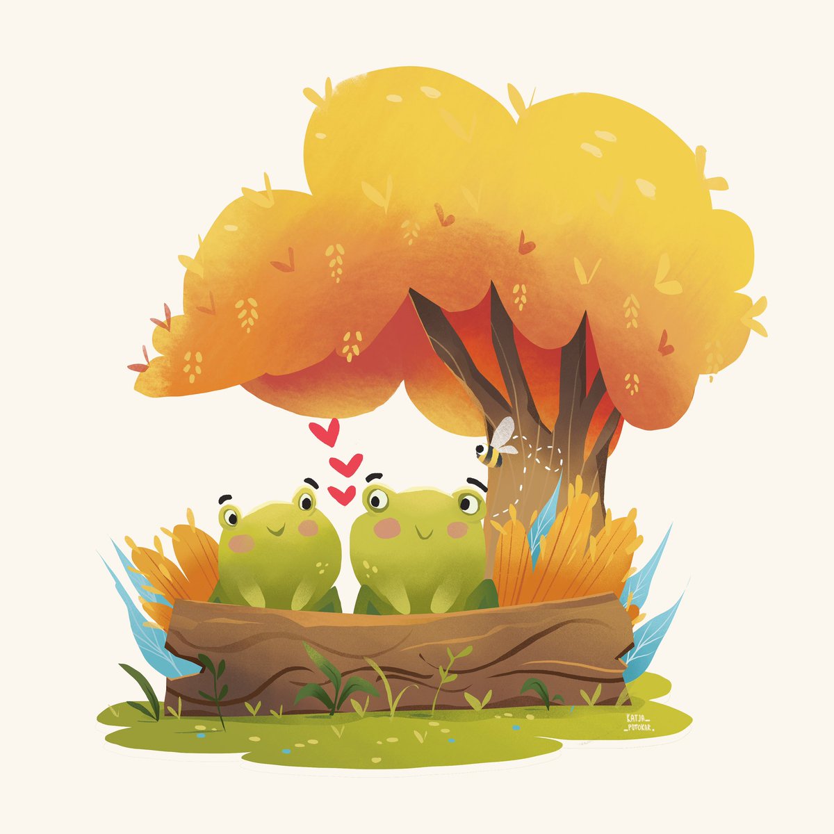 Frogs in love 🧡 Initially Painted this with ink but decided to also do it digitally. #cheektober21 #inktober2021 #promptlist #autumnart #frogs #love #illustration #illustrationartists #dayliart #digitalart #artoftheday