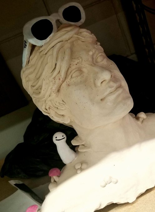 Part 3 of my Georgenotfound sculpture . Still working on getting the eyes right and finally starting the mushrooms and glasses . #georgenotfound #gnffanart #georgenotfoundfanart
