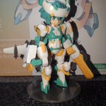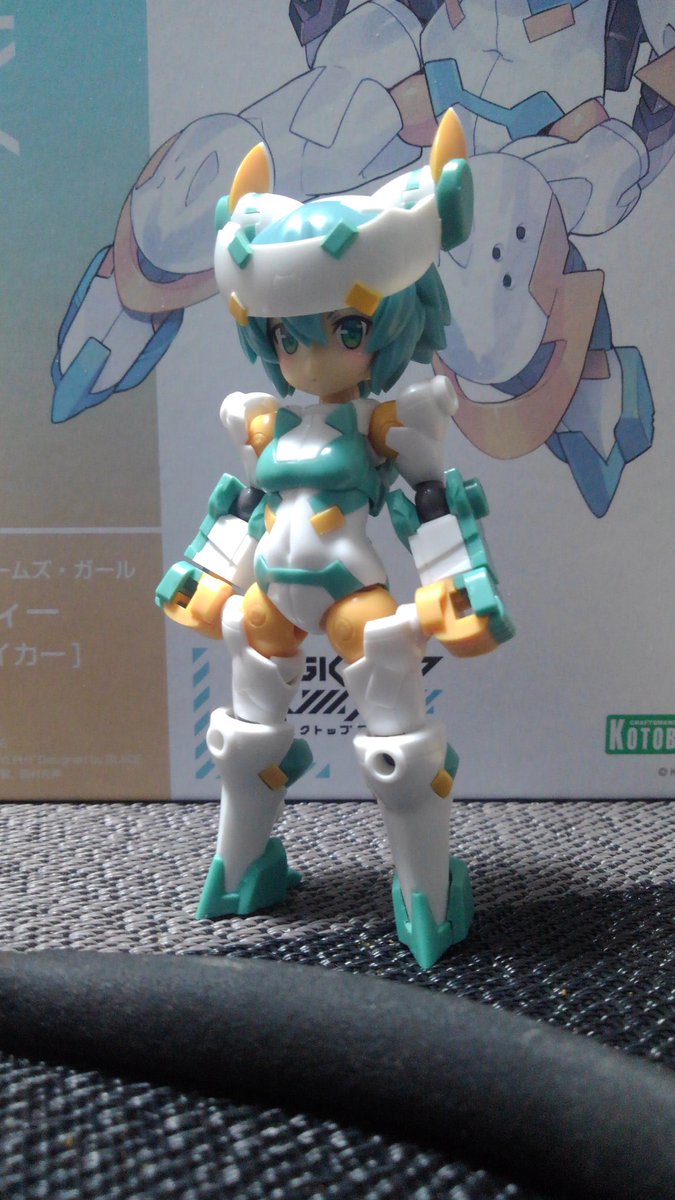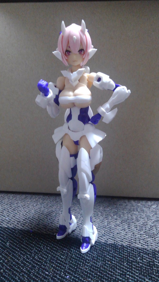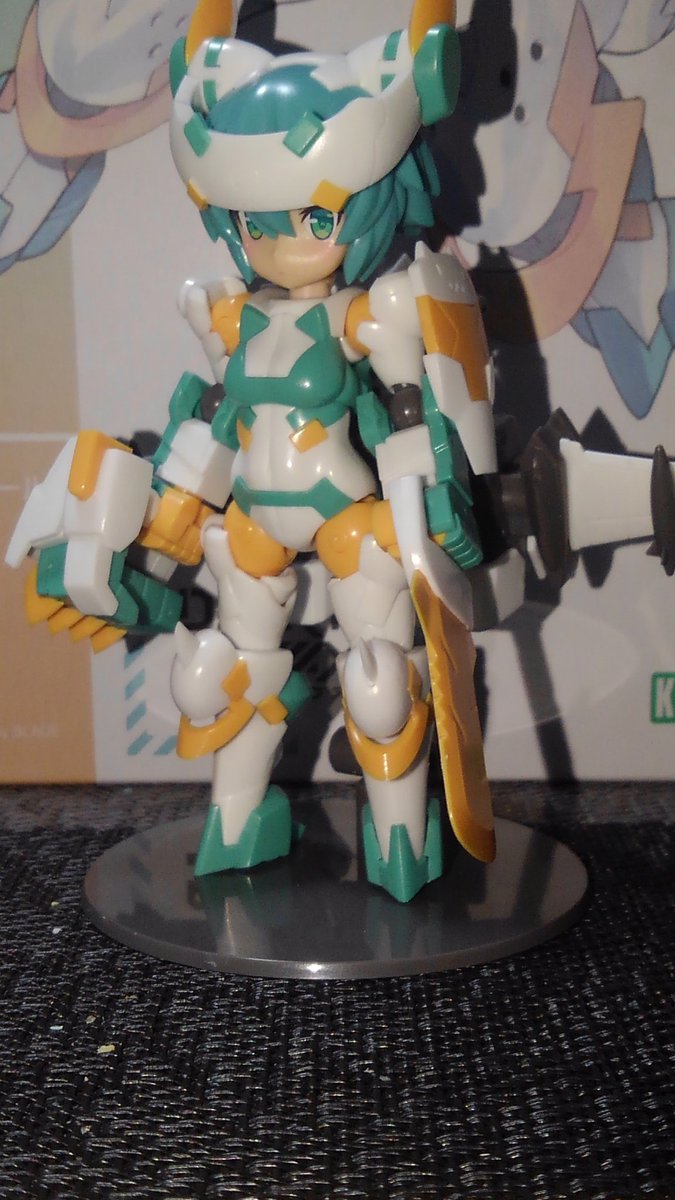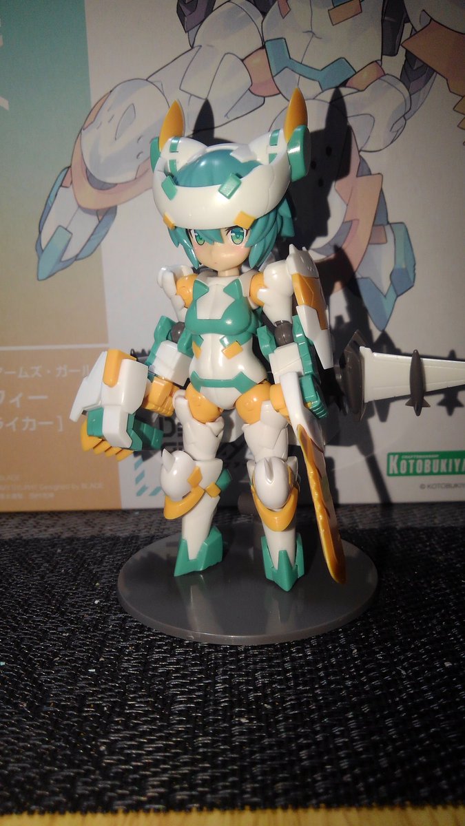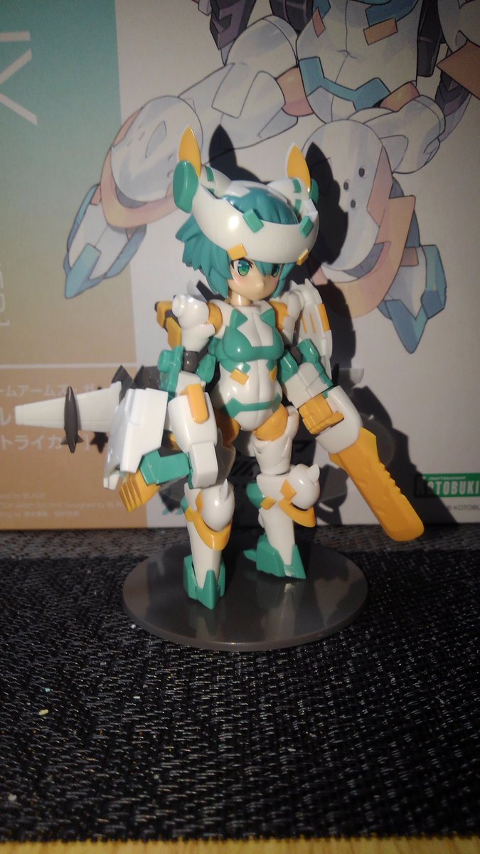 シルフィーちゃん、武装完成しました。 丸っこい見た目して随所にトゲトゲした部品があって組み立て中ドキドキでした。(指を刺さないか) 素組でも充分過ぎるクオリティーですね。 またよくよく見ると猫の意匠が施されて可愛いです♪ #DTA #デスクトップアーミー #フレームアームズ・ガール