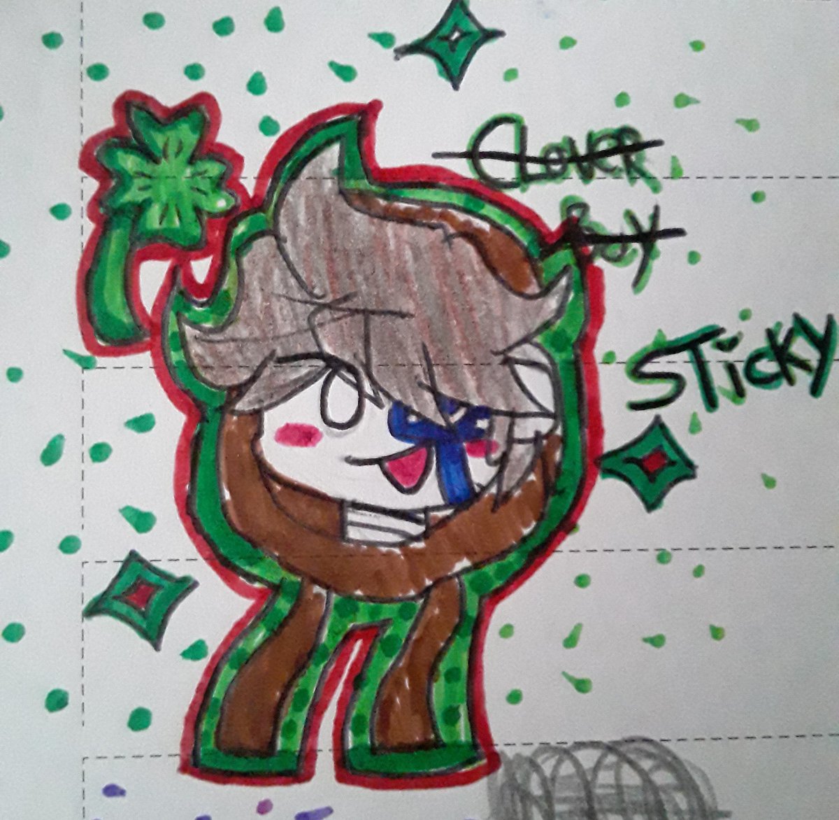 i fell asleep and forgot to post, sorry ;w; °• °• °• But i drew...... Jűšť Šţįćķý 🍀 :) #StickyBMfanart @StickyBM