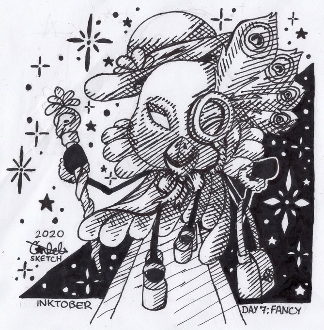 Inktober 7 & 8: Fancy and Teeth. Didn't have enough time to finish 7 yesterday, so I'm bunching it up with 8. :P #inktober2020 #inktober #oc #ocs #osc #objectshowcomminuty