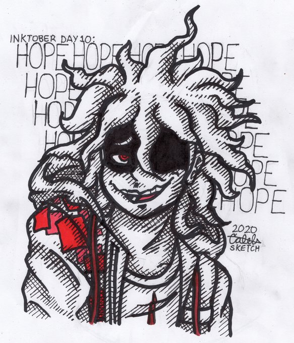 Inktober Day 10 & 11: Hope and Disgusting. A mix of Danganronpa (The 10th's prompt was basically asking for this bastard man), and an oc of mine. #inktober2020 #inktober #fanart #danganronpa #Nagitokomaeda #oc