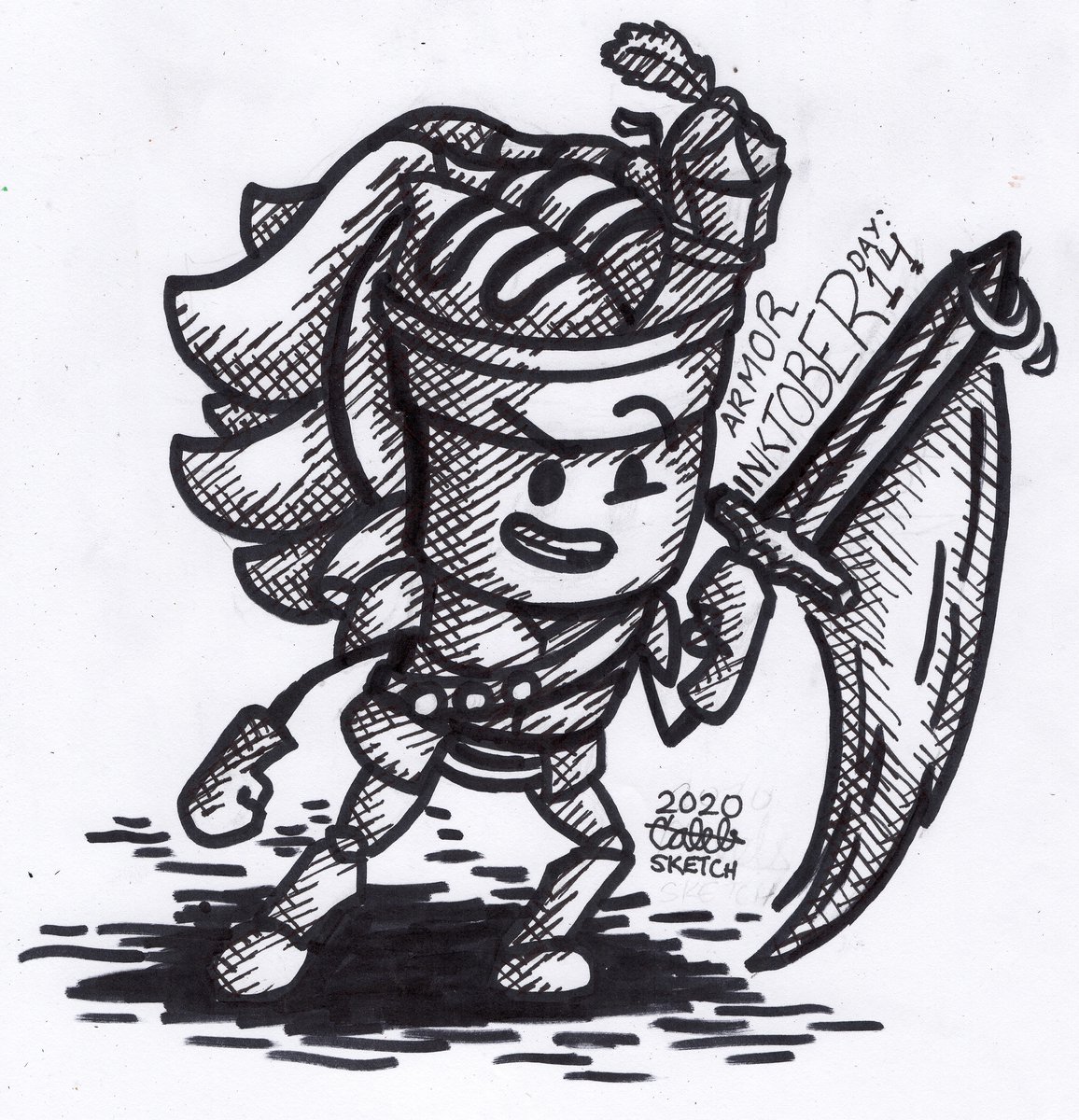 Inktober Day 14: Armor. Was planning to tackle both prompts today, but I wasn't motivated to start today's prompt. So have yesterday's prompt. #inktober2020 #inktober #osc #objectshowcommunity #oc