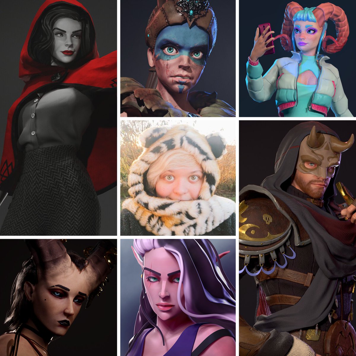 Happy #PortfolioDay! I'm Leah and I'm a Groom Artist the games industry. I like making my own characters and anybody with horns 👀 👉artstation.com/leahmcewen👈