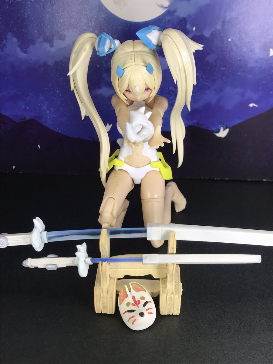 忍「忍者は影〜♪ひとの影〜♪ 🦊「古っ‼️ 鼻歌なんて、今日はとっても機嫌良さそうね 忍「にゃんにゃん💙 🦊「… 忍「(あれ?ここはニンニン🥷で行くべきだったか💦 🦊「コ…コンコン❤️ (=´∀`)人(´∀`=) にゃんともいい日だにゃー♬ #忍者の日なのでニンジャを貼る #メガミデバイス