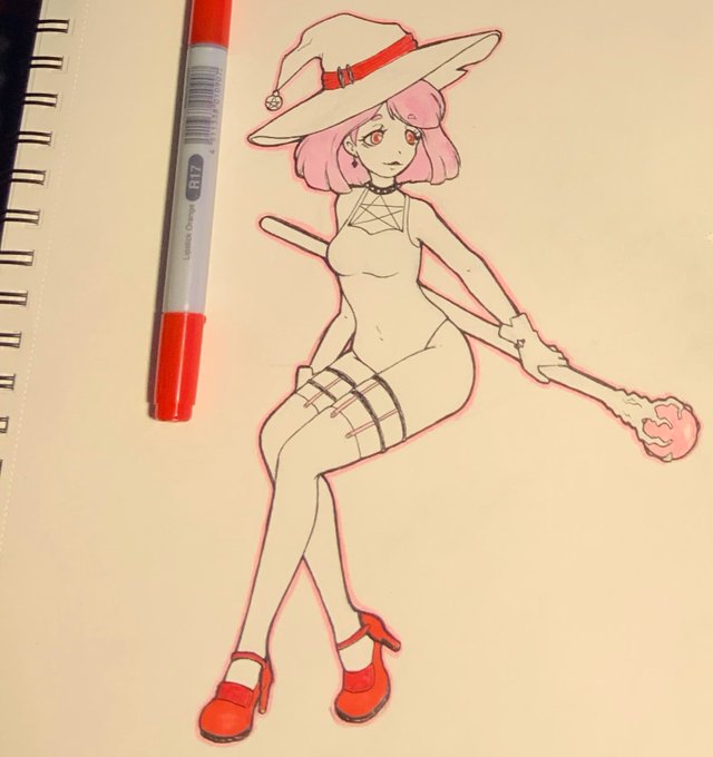 What is more Halloween than a sexy witch? Trick question, NOTHING!! I’m a little mad at added red at the end…but learned something new! When doing pops of color on an inked piece stick with just one. #inktober #ink #drawing #witch #drawtober #tradtionalart