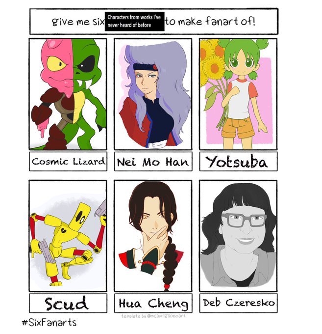 Now it is complete! Thank you for the template @WolfThunder29 And for the requests @harpyslugs @stormyboi7 @reapthegirlwind @m34thead @neonach_rory This was an awesome break from things. Back to some aliens haha ❤️💛💙🧡💚💜 #SixFanarts #SixFanartsChallenge #digitalart