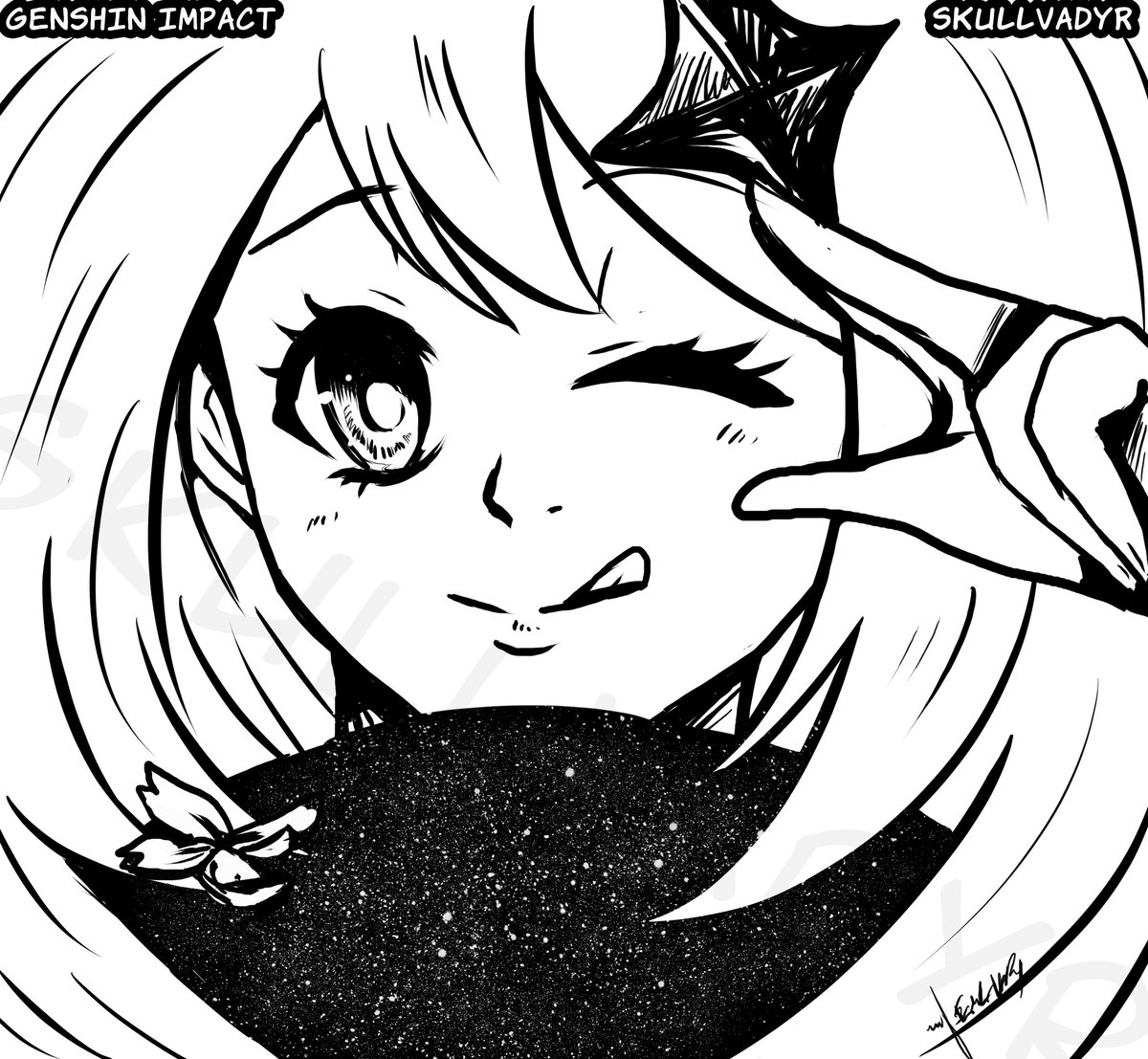 Day 24 of my #inktober "Gametober" #GenshinImpact with Paiemon. I choose this because I want to go out my comfort zone. I never draw this type of "manga" style. I wanna learn. I try somes thing I never test so the draw is not good but I least I've tryin :q #genshinimpactfanart