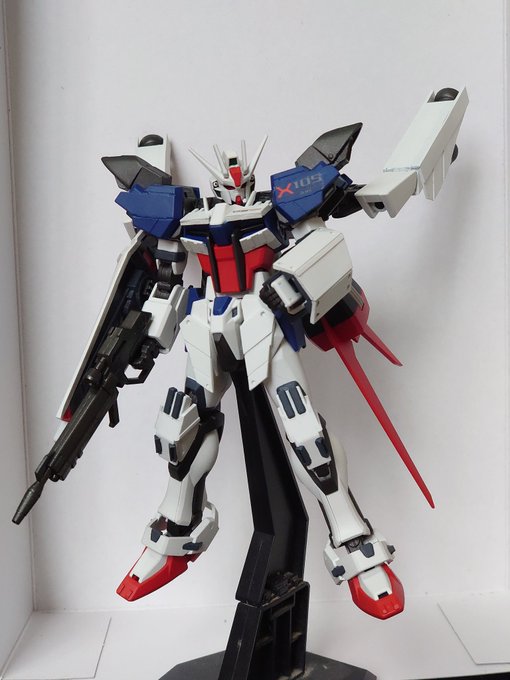 #ガンプラ #ガンプラはどんな自由な発想で作ってもいいんだ つや消し(武装半つや)塗装完了! ストライクガンダム ライトアーマー 高速域試験用ストライカーパック仕様完成!! メインの塗装してくださった先輩モデラー様に感謝を…!
