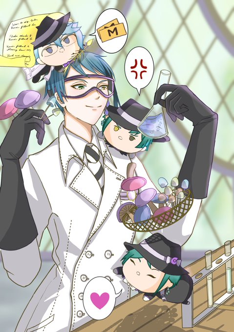 🦈「アザラシちゃんいいの持ってんじゃん。」 🐱「これは俺様の風船なんだぞ!お前らにやらないんだぞ!」 🐬「そうですか…残念です。フフッ」 3周年おめでとう‼️ #ツイステ3周年 #twstファンアート