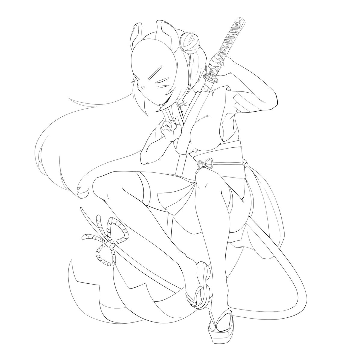 WIP just finished line art. When I saw her outfit and that mask…I just had to do it. Ninja of chaos Hakos Baelz from “HIdden Rats Village”. Hahaha #holoCouncil #hololiveEN #hololiveEnglish #illustrayBAE