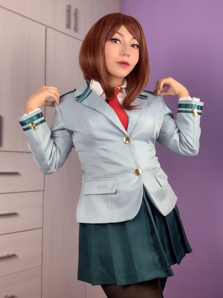 Intente algo diferente con el ángulo de la cámara, para ser la primera vez se ve decente y bonito u//v//u 💕💜 #urarakaochako #Ochakouraraka #BNHA #MHA #anime #animetwt #Anitwt #cosplay