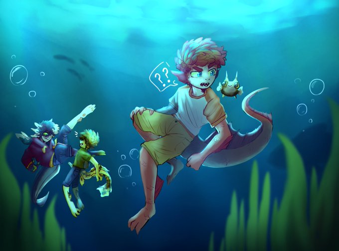 Day 5/31 of tommyinnit art :D (ft beeduo) (an hour late but ITS DONE!) Todays prompt was Luca! Another very cool movie I enjoyed and I was super hyped to draw this after i saw it a few days ago :] #tommyinnitfanart #tubbofanart #ranboofanart #benchtriofanart 🐟🐠🐡🐟🐠🐡