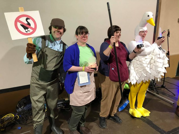 Our "Untitled Goose Game" cosplay won "Best Group" at Louisville Arcade Expo this weekend. #louisvillearcadeexpo #untitledgoosegame #cosplay