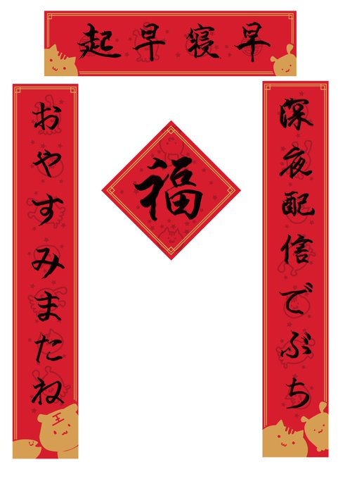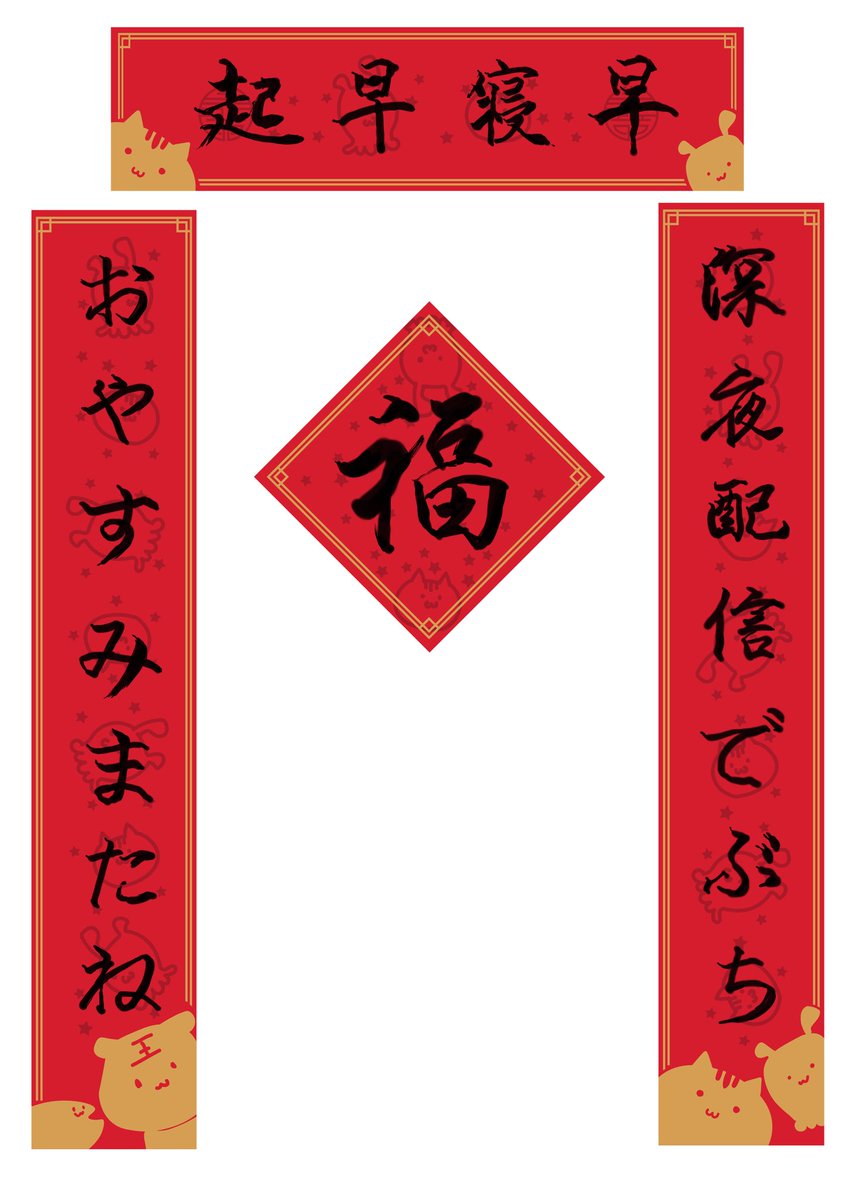 春聯(春联)は、春節の対聯。 春節の時、祝うのため、赤い紙に祝福や抱負などの対句を書いて、ドアの両側に貼るもの。 #ShanoArt #しゃのあ