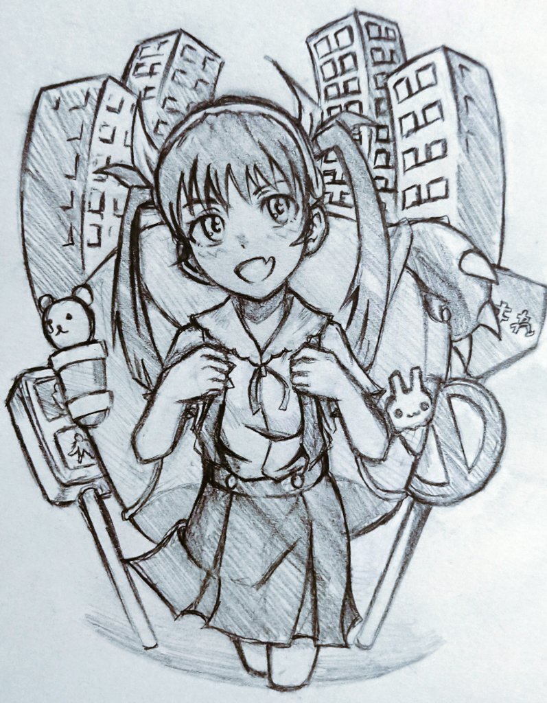 これ描くのに4時間ひゃんっ……半ぐらい…噛みまみた #このタグを見た人はラフ画とその完成絵を見せる #絵描きさんと繫がりたい #物語シリーズ