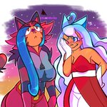 AAAH IM TWO DAYS BEHIND CUZ OF REASONS BUT!!! IM HERE NOW Day 1 of #crwlw_week: costume!! They're dressed as an Incineroar and an Alolan Ninetales <33 (and kumis havin a giggle at her gf's displeased reaction to her costume 💙💚) [#cookierun #cookierunfanart]