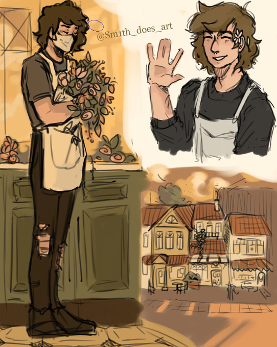 Ranboo as a Florist! this is another drawing of @saterise's Bentchtrio AU! Honestly the colors on this one makes me really happy for some reason! :D #ranboofanart #ranbooart rt's are very appreciated!!