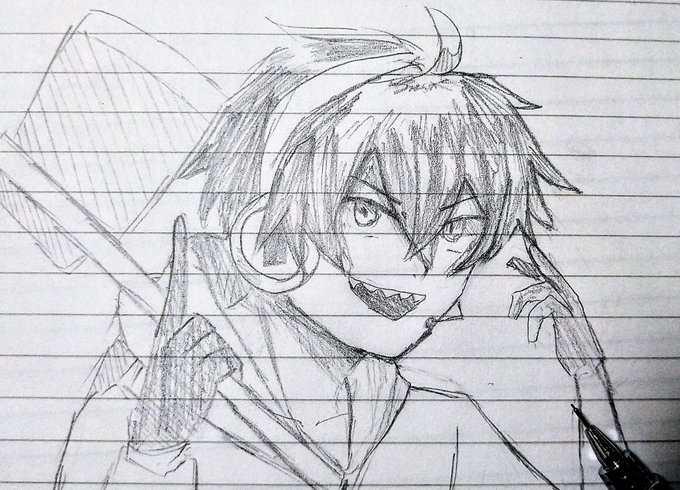 衝動で描いた📕さん 何のボカロか分かりますか? #しろっぽ