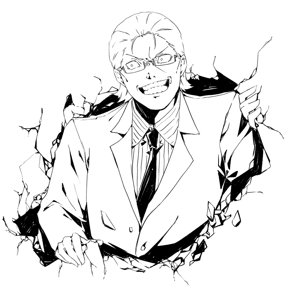 閉じかけのディメンジョンゲートをこじ開けて追いかけてくる春日恭二の立ち絵です! 春日恭二が閉じかけのディメンジョンゲートをこじ開けて追いかけてくるシーンや春日恭二が壁をぶちやぶって登場するシーンでお使いください…! pixiv.net/artworks/11095…