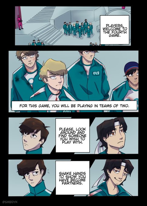 squid au! mcyt comic :] quess who's behind that mask on the last page 🦑rts are highly appreciated🦑 #georgenotfoundfanart #sapnapfanart #karljacobsfanart #tommyinnit #quackityfanart #quacktober #wilbursootfanart #mcytfanart #SquidGame #SquidGames #squidgamefanart