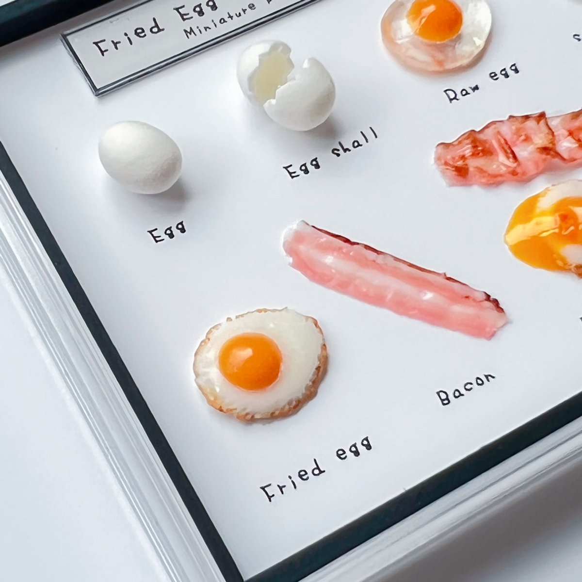 着色したパンを自作のフレームに並べて 図鑑風に仕上げています🍞🥖🥐 それと、目玉焼きメイキング図鑑も1点作りました🍳🥚 どちらも、YouTubeでメイキング映像があるので良かったら見てくださいね🎥 #ミニチュアフード #ミニチュアパン #miniaturefood #miniatureBread youtube.com/channel/UCFckB…