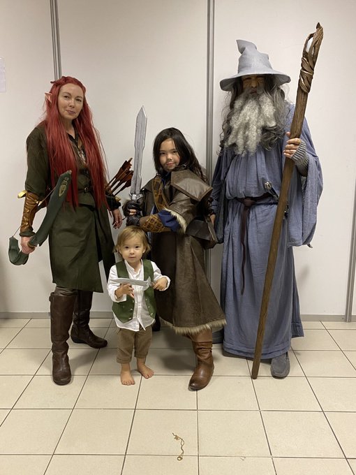 Family cosplay of The Hobbit today at Great Yarmouth Comic Con #cosplay #thehobbit #bilbobaggins #tauriel #gandalf #kili @EvangelineLilly @IanMcKellen