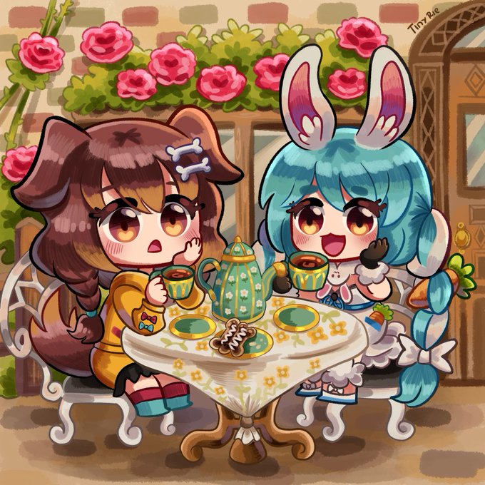 Doggo and bunny having tea together~ #ぺこらーと #できたてころね #hololive #CHIBI