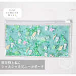 #2023年アルケミノート春の新作 ④微生物とねこシャカシャカビニールポーチ イカダモに乗って辿り着いたミクロの世界🦠 微生物とねこの不思議なSUMMER VACATION...🌞🌊 しっぽに食いついてるの誰ーーー💢