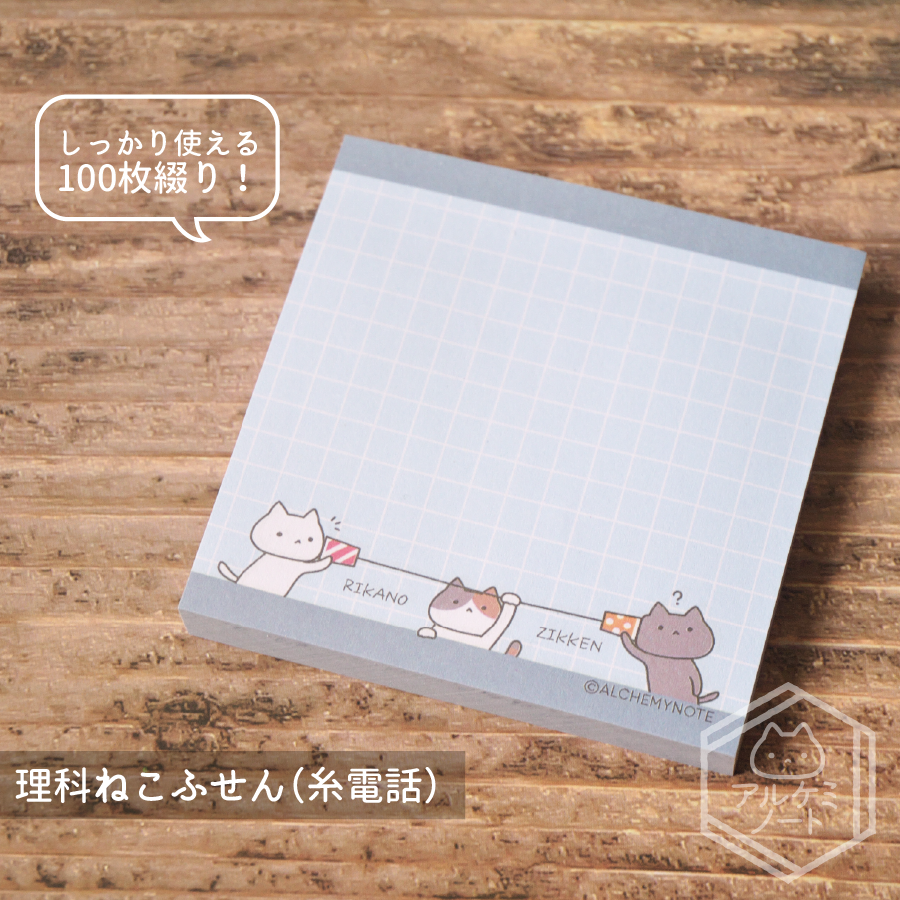#2023年アルケミノート春の新作 ⑥理科ねこふせん(糸電話) 糸電話イラスト、リメイクして付箋にしました。 三毛( 'ω' )و<ギュッ デスクワークでも使いやすい、しっかりメモできる正方形。実用的💪( ˙-˙ 💪) たくさん使える100枚綴り! 【サイズ】75mm×75mm